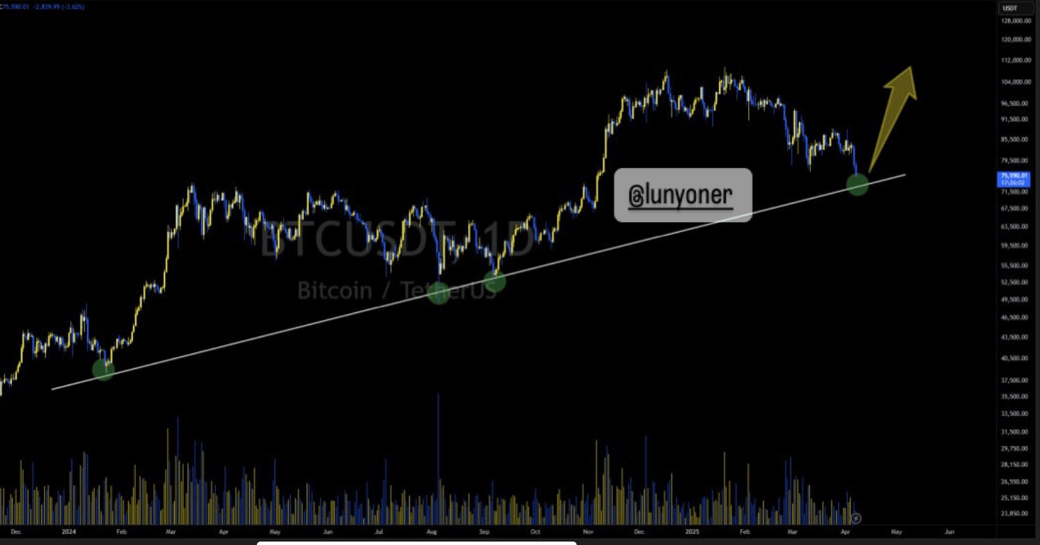 • 75.000 – 76.000 USDT: Soporte de tendencia principal (marcado con un círculo verde)