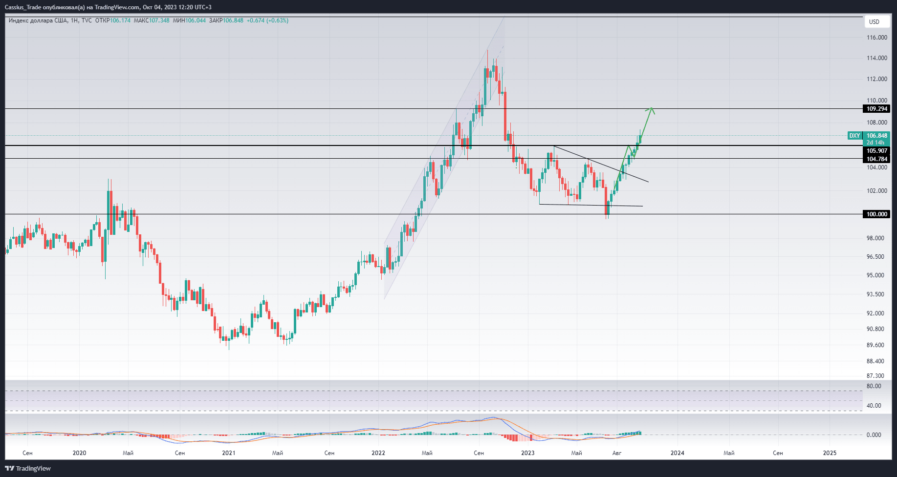 Про индекс доллара мы писали неделю назад и с того момента он прибавил более 2 пунктов. Пока динамики на слом укрепления доллара не видно. А влияние сильного доллара на рынки мы уже описывали ранее.