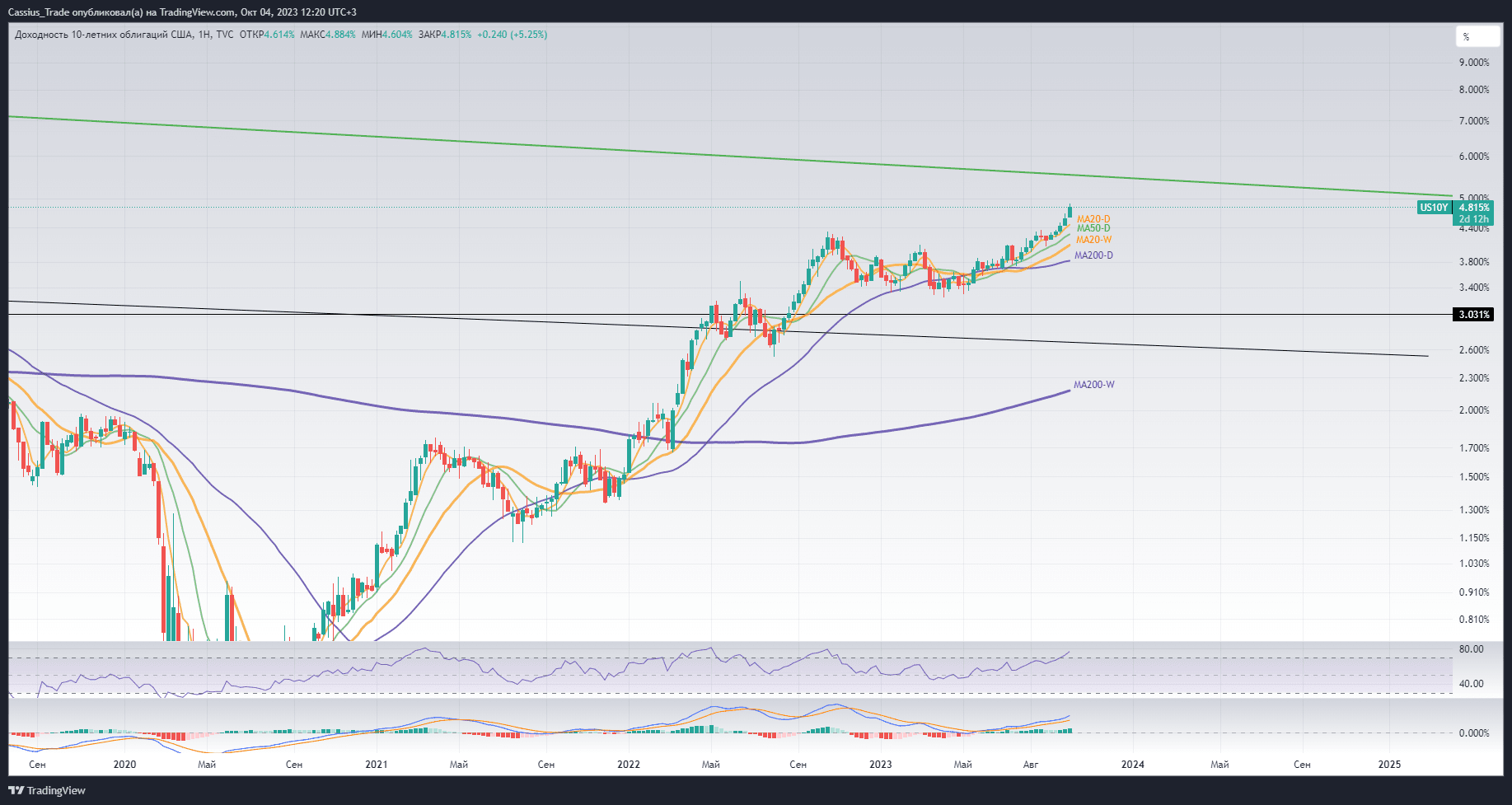 Как правило рост процентной ставки по 10-леткам - это плохой знак, указывающий на вывод ликвидности из рынков.