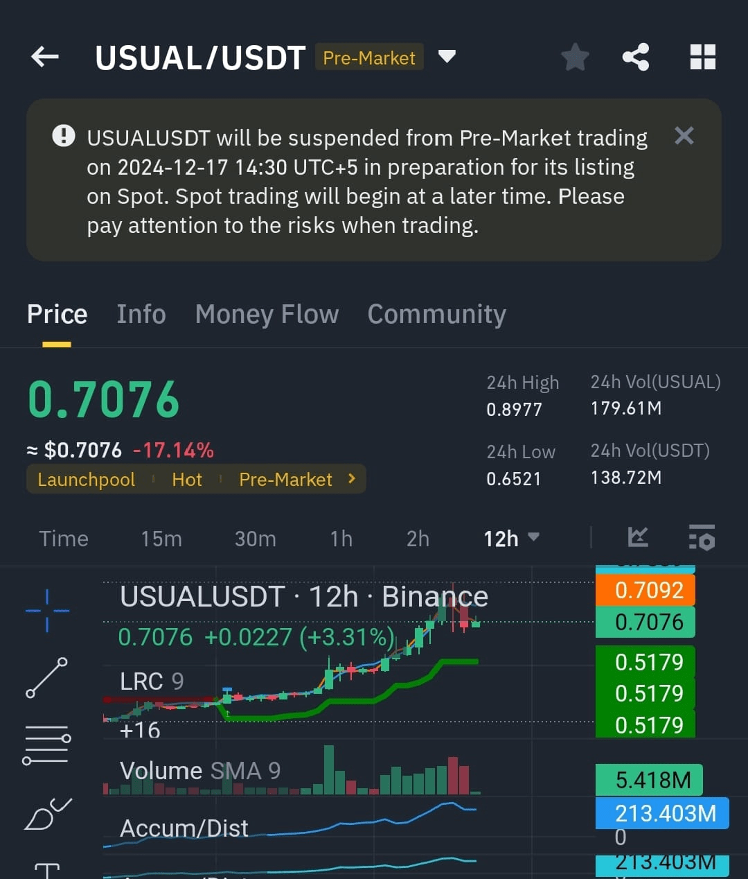 $USUAL Let me explain in simple words how to understand the use of gpt help as well. The notice states that USUALUSDT pre-market trading will be suspended on December 17, 2024, at 14:30 UTC+5 in preparation for its listing on Spot. This means that you will not be able to trade USUALUSDT before the market opens that day. What to do * Wait: If you are bullish on USUALUSDT, you can hold your position. Pre-market trading suspension is not necessarily a bad sign. It could be a sign that the exchange is preparing for a large influx of orders when the coin is listed on Spot. * Sell: If you are bearish on USUALUSDT, you can sell your position before the pre-market trading suspension. However, keep in mind that the coin price may also rise after the suspension is lifted. Ultimately, the decision to hold or sell is up to you. Consider your risk tolerance and investment goals. Here are some additional factors to consider: * Reason for the pre-market trading suspension: Is the exchange simply preparing for a large influx of orders, or is there something else going on? * Overall market sentiment for USUALUSDT: Is the coin generally bullish or bearish? * Your personal financial situation: Can you afford to lose money on this investment? If you are unsure what to do, you may want to consult a financial advisor.