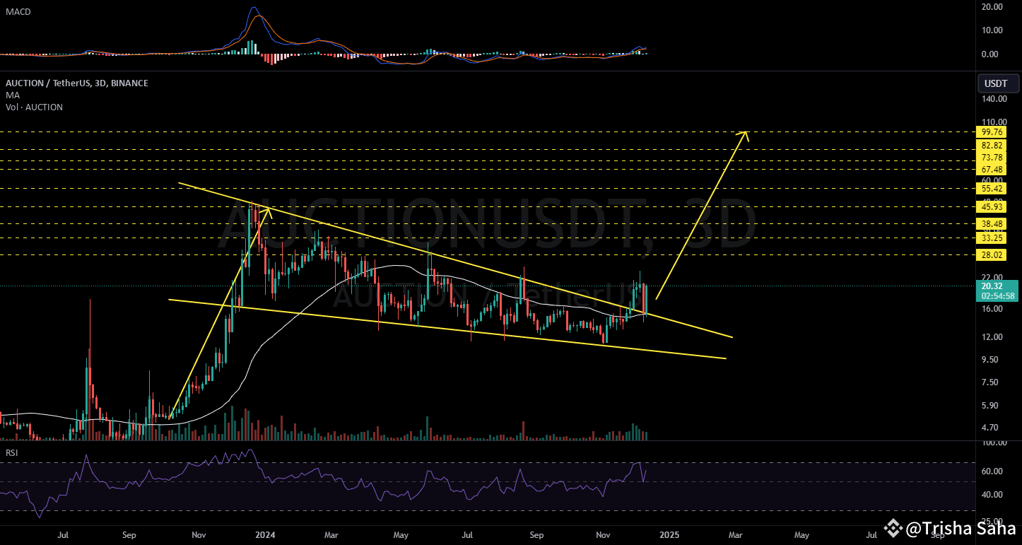 #AUCTION has broken out of the falling wedge pattern, retested it, and formed a strong green candle on the 3-day chart. The MA50 and the pattern are acting as strong support.