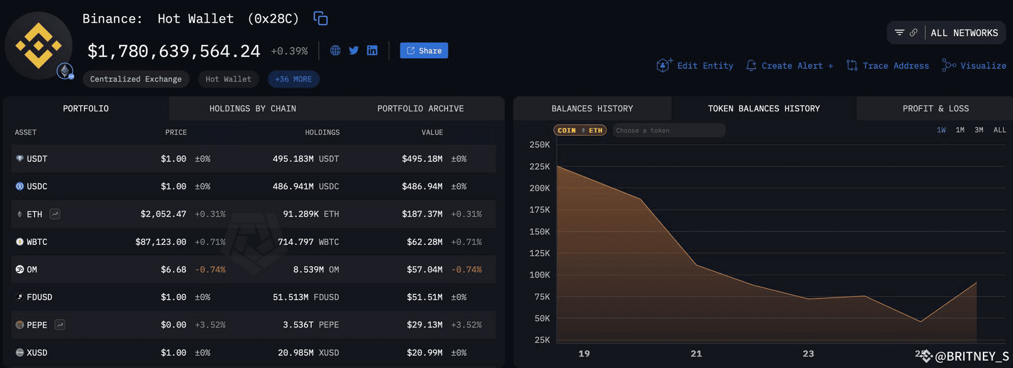 ๐ฅ *Big News!* Binance's *hot wallet* has seen a *significant increase* in its *ETH holdings*, with the total amount of *Ethereum* rising to *1.28M ETH* ๐. This indicates that Binance is actively *buying more Ethereum*, which could signal a *bullish trend* ahead forETH!