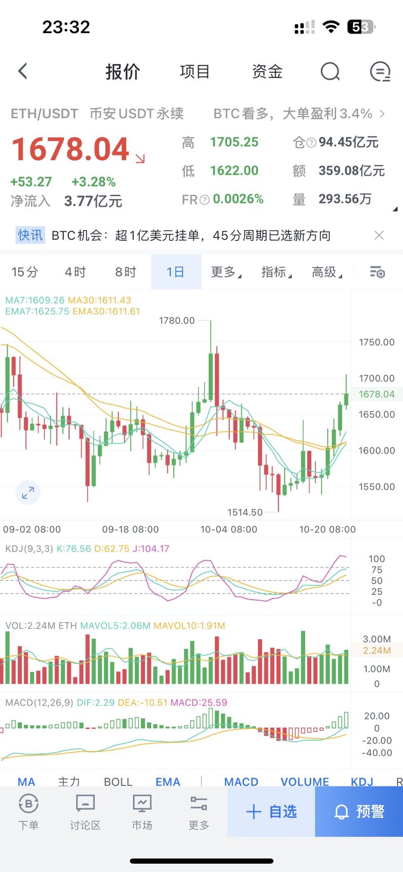 以太坊建议反弹1700-1730 区间分批做空 目标看:1650-1620 风控:1750
