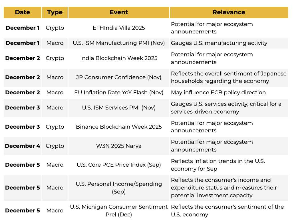 Figure 9: Key Macro and Crypto Events for the Week of November 29 – December 5, 2025