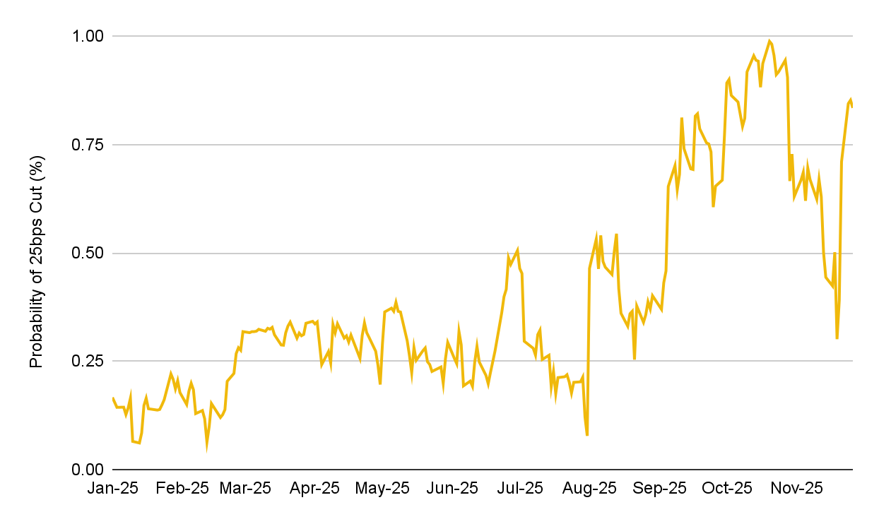 Figure 8: Markets are now pricing in ~85% probability for a 25bps rate cut in December