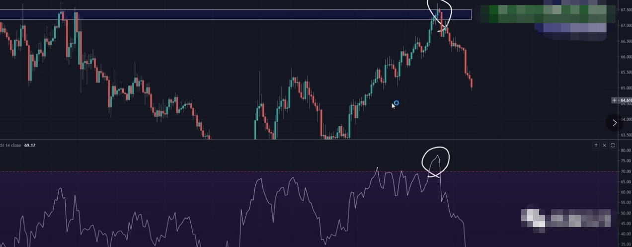 假如我们看到价格在最近几支K线偏上方的位置停留