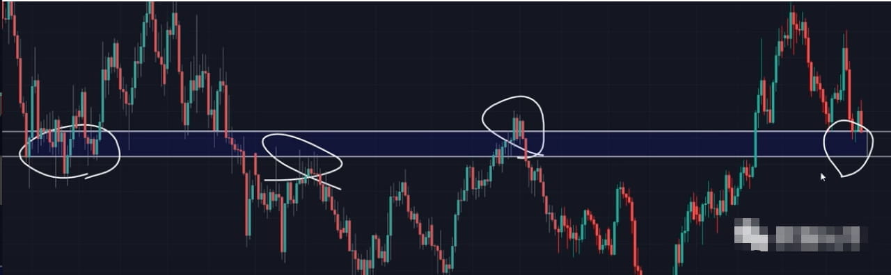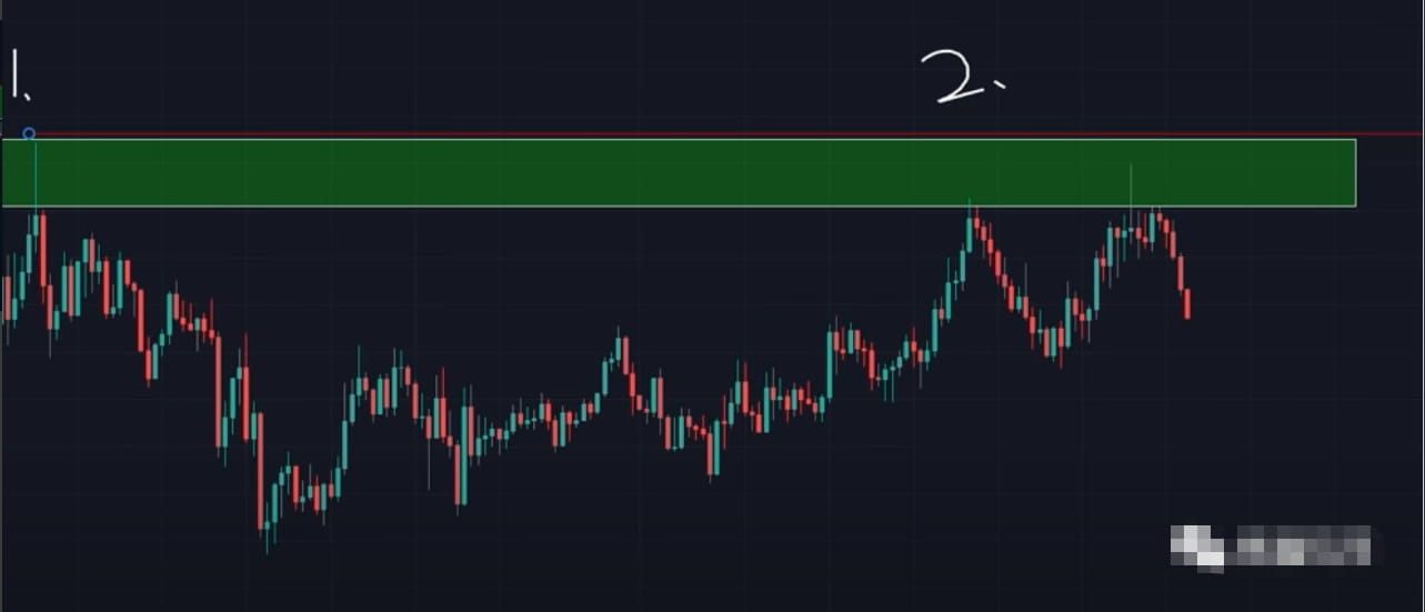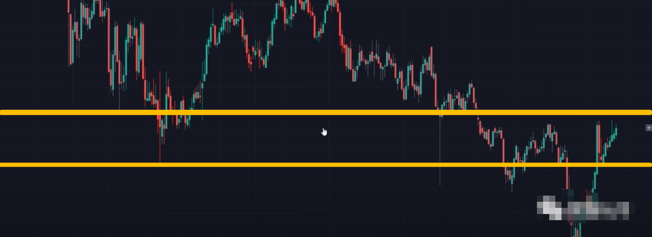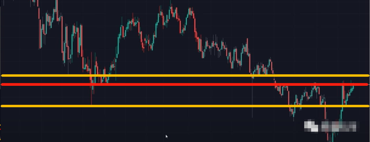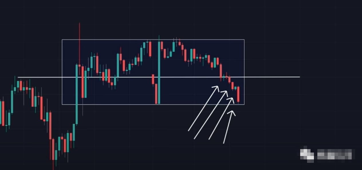 如果看到价格在这个区域内开始停留在下半部分的话