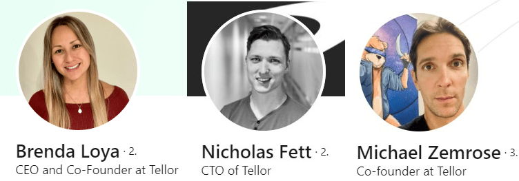 Tellor, 2019 yılında Brenda Loya, Micheal Zemrose ve Nicholas Fett tarafından kurulmuştur.