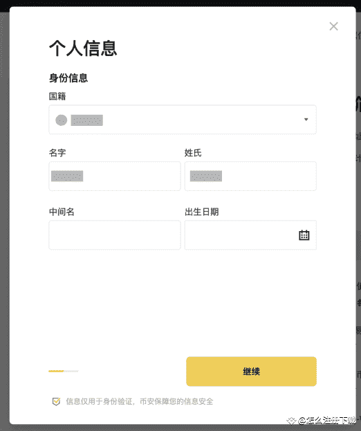 选择您所在的国籍,根据指示输入您的身份信息和补充信息。请确保您输入的所有信息与您的身份证件一致。确认后,您将无法更改。