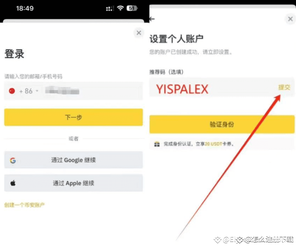 2、邀请返佣:使用币安邀请注册链接20%手续费优惠/邀请码 YISPALEX ,只有注册时候能用,20%终身返现,非渠道内没有此福利。
