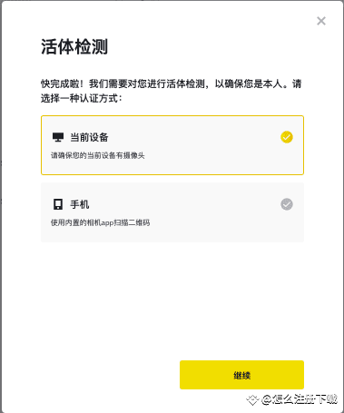 之后,系统会要求您完成活体检测。选择使用【当前设备】或【手机】。
