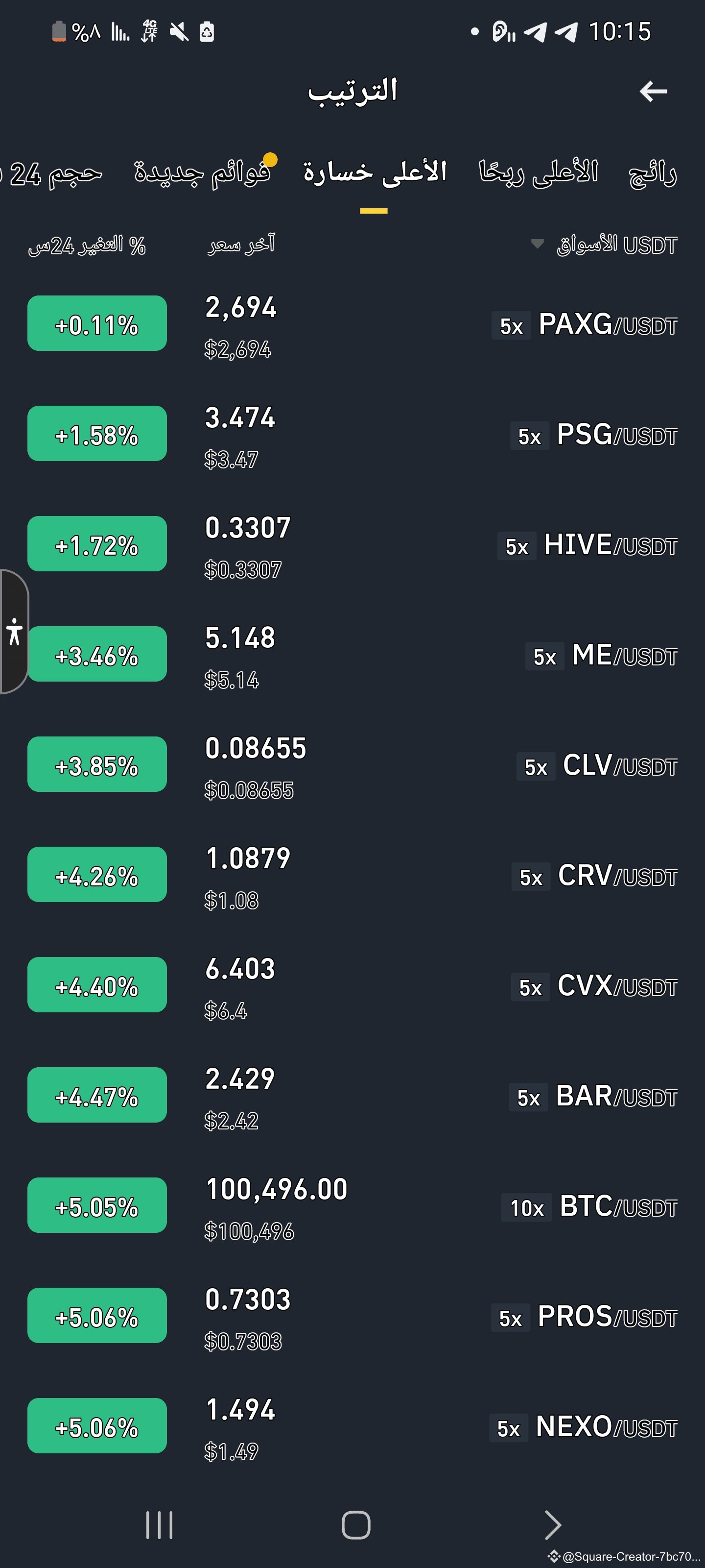 على الرغم من تصنيفها تحت فئة "الخاسرين"، إلا أن عملات مثل PAXG، ME، PSG، HIVE، CLV، و NEXO قد أظهرت علامات على التعافي مع تغييرات إيجابية في النسبة المئوية خلال الـ 24 ساعة الماضية. PAXG (2,696 دولار) حققت تعافيًا طفيفًا بنسبة +0.30%، مما يشير إلى الاستقرار بعد الاتجاه الهبوطي. في الوقت نفسه، ME (5.11 دولار) و PSG (3.48 دولار) يكتسبان زخمًا مع مكاسب بنسبة +2.61% و +2.74% على التوالي، مما يُظهر إمكانية المزيد من الزخم الصعودي إذا استمر اهتمام الشراء. HIVE (0.3312 دولار) و CLV (0.08716 دولار) قد ارتدتا بنسبة +2.89% و +3.45%، مما يشير إلى احتمال تحول في مشاعر السوق مع بدء المشترين في العودة. البارز هو NEXO (1.49 دولار)، الذي يتصدر بمكسب قدره +5.07%، مما يجعله مرشحًا محتملاً للتداولات القصيرة الأجل.