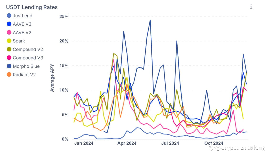 Notably, the demand surge for lending drove interest rates to exceptional levels, now exceeding 10% on average and reaching as high as 40% on certain platforms. Interestingly, these figures mirror the peak dynamics seen in the 2022 bull market.