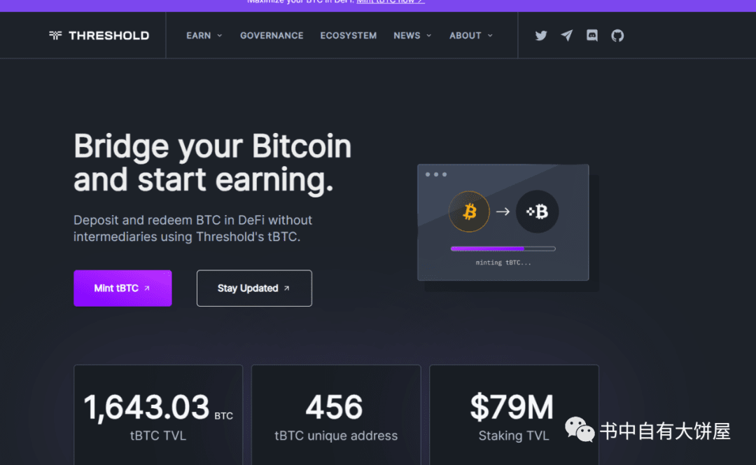 今天我们继续回归,按照市值顺序往下讲,我们刚结束了一期RWA之旅,然后回归正题,最近我们知道比特币生态非常的火爆,什么sats暴涨了数十倍,ordi后面又涨,ordi我们之前讲过,在比特币链上创建一个BRC20也非常的简单,所以这类币是没有基本面的,可以归属为MEME系列,风险较高,大家要有风险承担能力,今天我们也将一个比特币生态的项目,他就是Threshold,代币代号T,它主要是把比特币跨链到以太坊上的这么一个桥,目前市值2.3亿美金,排名150+。