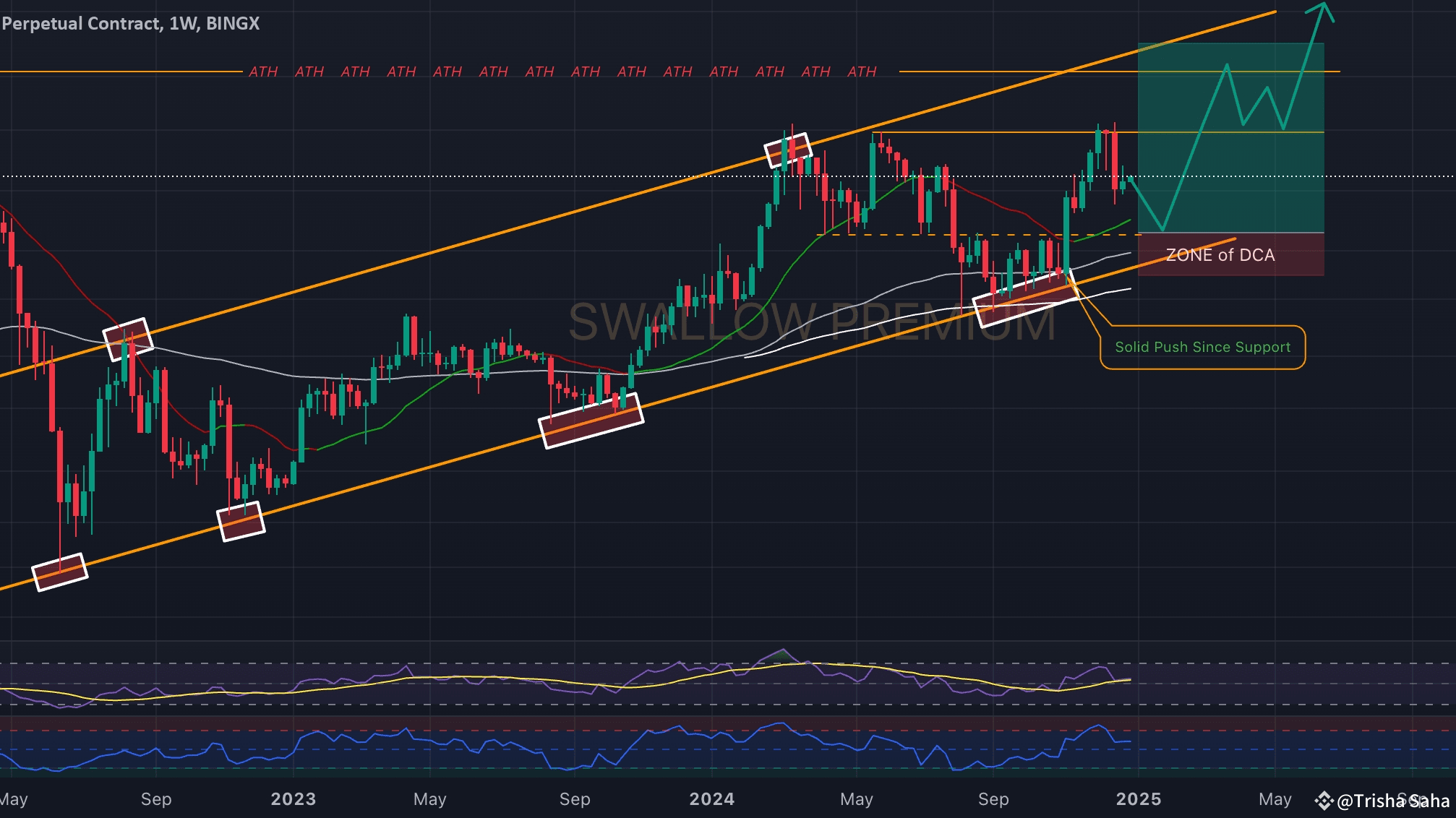Ethereum, on the other hand, is looking much better than Bitcoin, where we did catch a nice bullish move from the last touch of that lower support trend, where we also caught the start of correction, which is still undergoing!