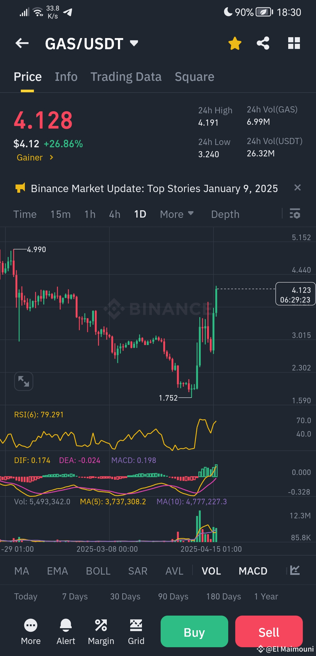✅ حجم تداول ضخم! أحجام تداول ضخمة تدعم الحركة الحالية، حيث بلغ حجم GAS أكثر من 6.99M، ما يدل على اهتمام كبير من المتداولين!