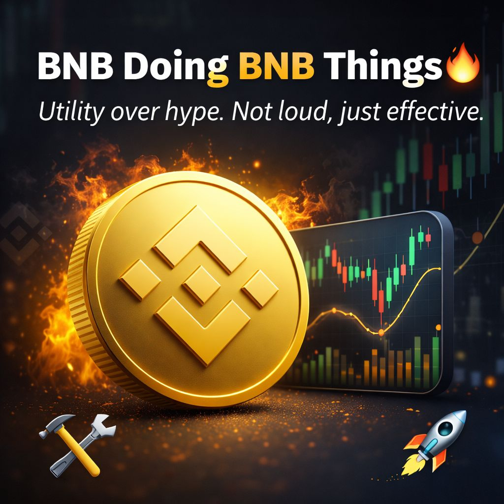 BNB stays calm while the market loses its mind 😎. Backed by the Binance ecosystem, it keeps powering trades, fees, and launches like a quiet workhorse 🛠️. Price may wobble with the market 🎢, but BNB keeps showing why utility > hype. Not loud, just effective.