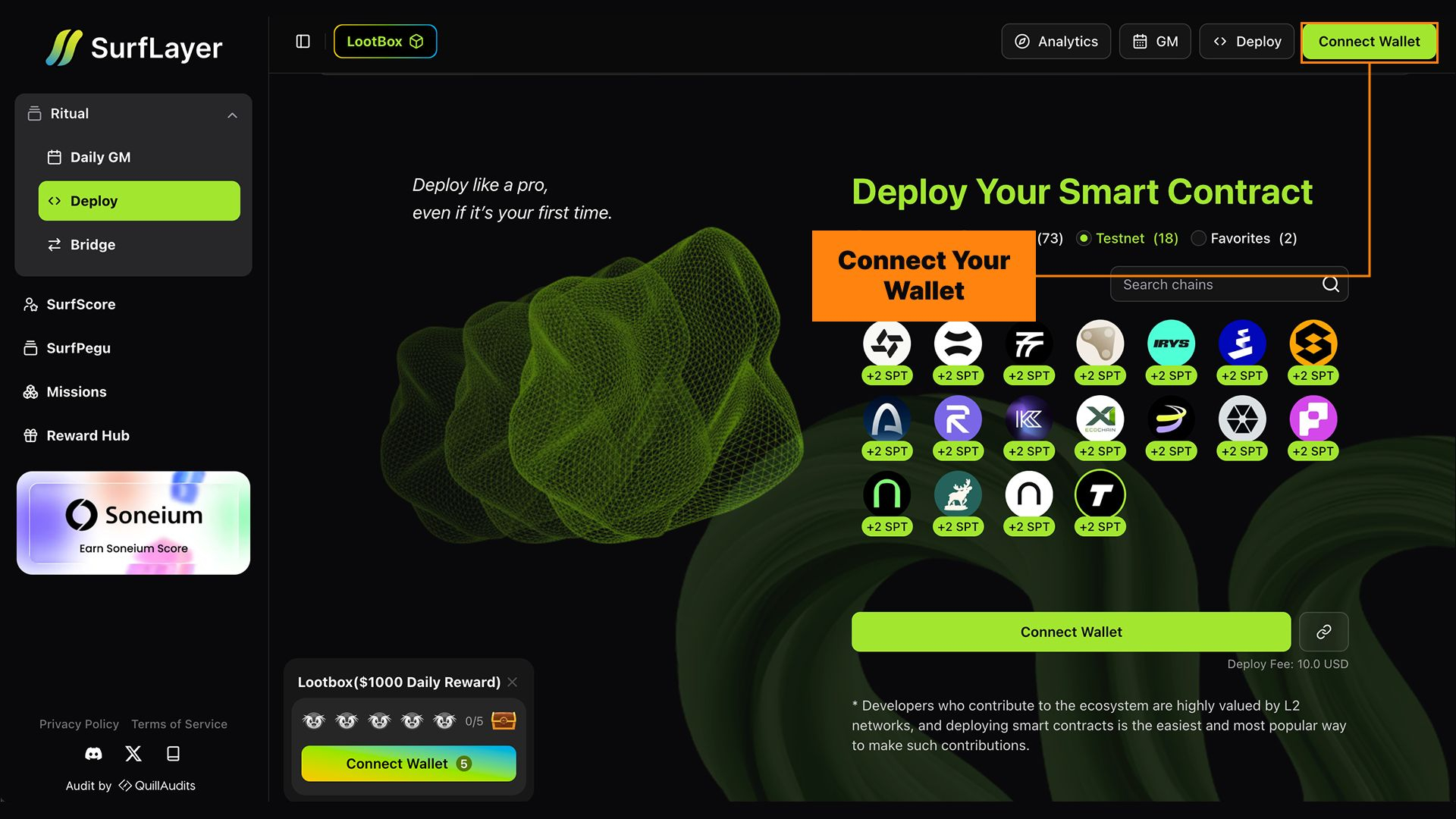 Visit the SurfLayer Deploy interface and connect your wallet: