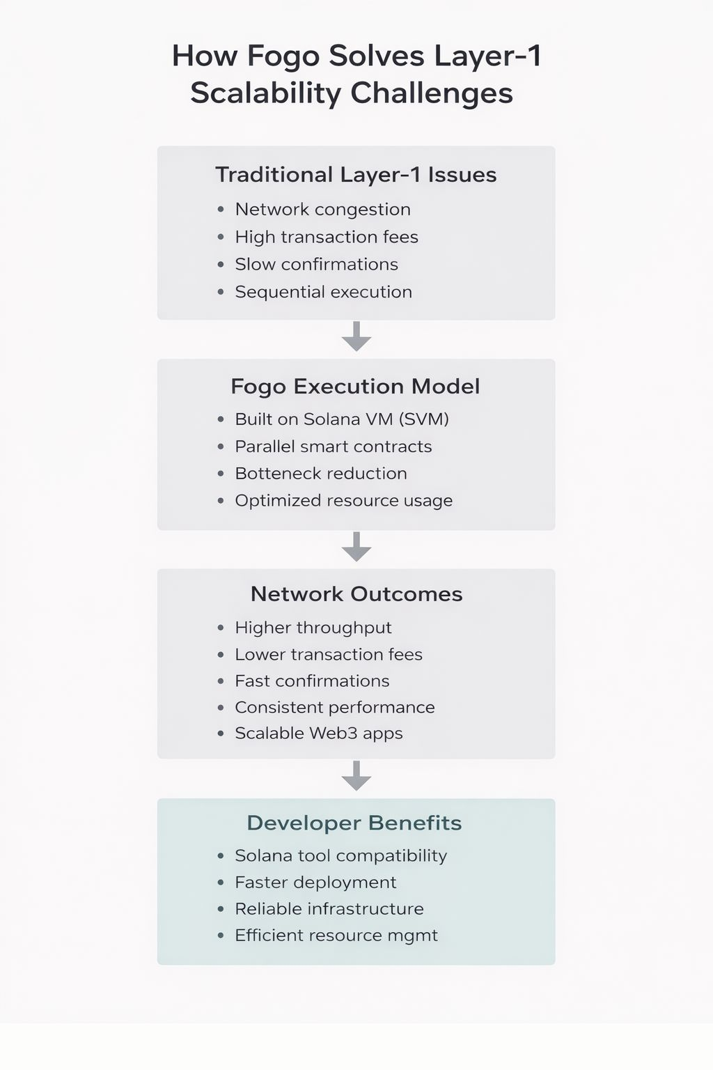 Traditional Layer 1 blockchain often struggle to balance scalability, speed and cost. As network usage grow congestion increases, transaction fees spike and confirmation time slow down. Fogo addresses these long standing challenges by building its architecture around the Solana Virtual Machine (SVM) enabling parallel smart contract execution and significantly higher throughput.