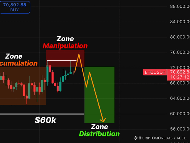 El Suelo Crítico: Mi zona de vigilancia real está en los 60,000. Ese es el "piso" psicológico y técnico que el mercado quiere ir a testear para limpiar toda la liquidez de los largos apalancados.