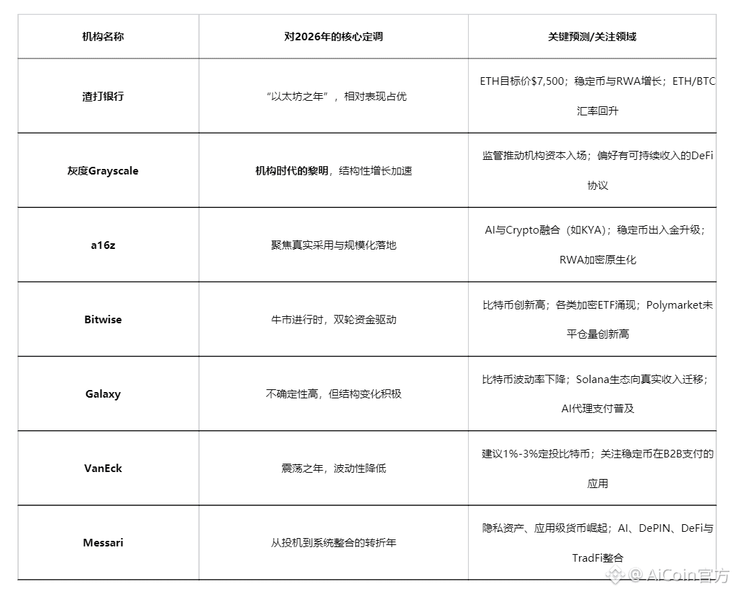 随着2025年收官,传统金融机构与加密领域的意见领袖(KOL)纷纷发布对2026年的展望。市场共识正在凝聚:一个由机构资本、清晰监管和真实效用驱动的“结构性牛市”阶段或将开启,而市场的权力结构与价值逻辑也正在经历深刻重构。