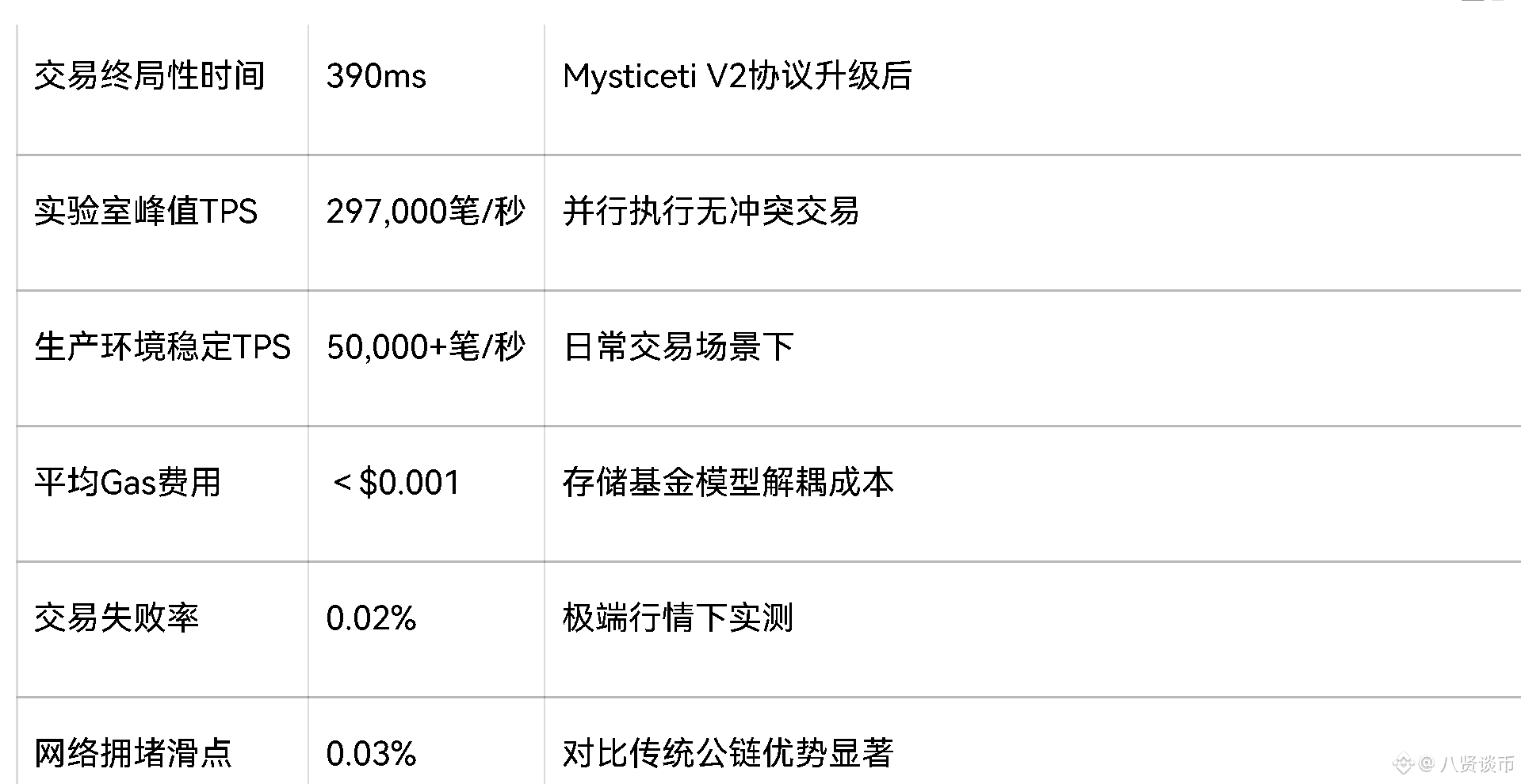1. 技术壁垒显著:Mysticeti V2协议的390ms终局性、5万+生产环境TPS,在高性能公链赛道形成差异化优势,且Gas费用近乎为零,适配高频交易、游戏等刚需场景;
