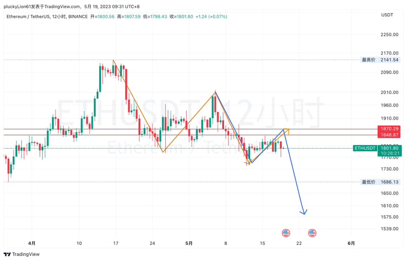 以太方面反弹不及预期,昨天的一波震荡仍然未破上方压力位,我们将压力位短期下调至1850-70之间,这里不突破,未来走势仍然会和大饼一样,且行且珍惜