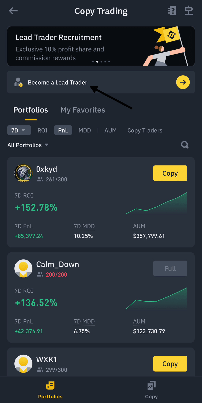 2. Click on the option that says [Become a Lead Trader].