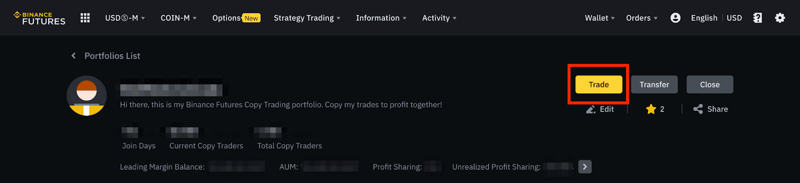 • If you want to close the portfolio and have your followers’ portfolios stop copying trades, click [Close]. Please note that you cannot close the portfolio if it still has open positions.