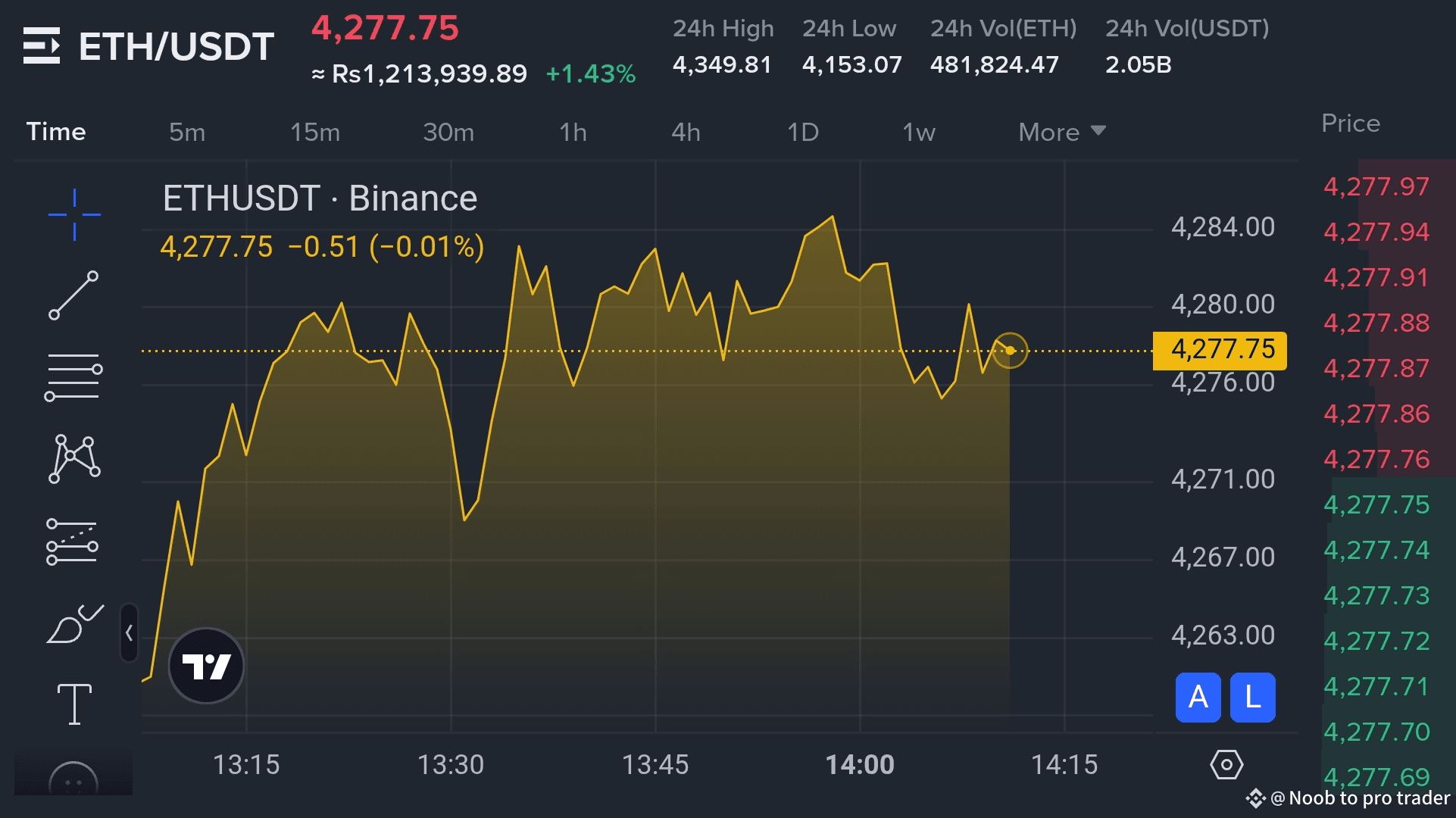 Late Rally Surge: ETH rallied strongly on late Sunday, hitting around $4,320.55 and stabilizing near 0.035 BTC.
