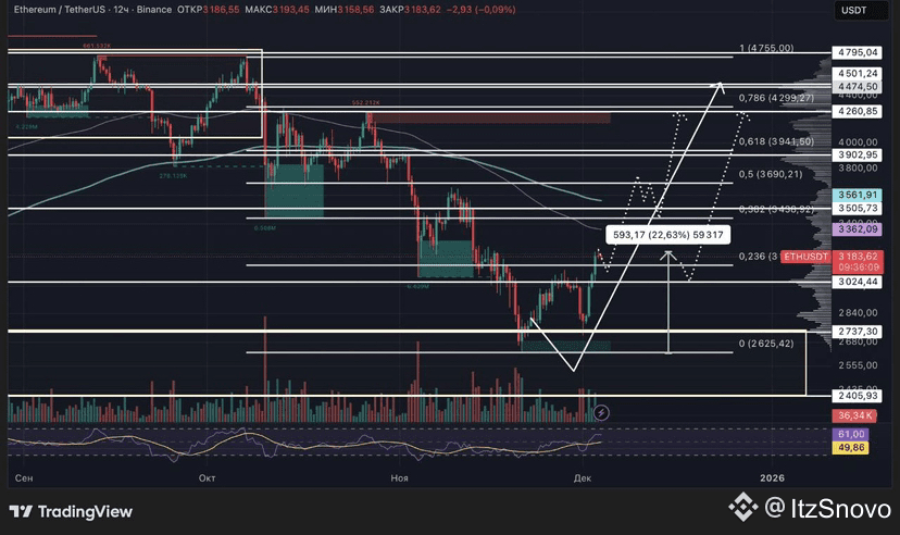 На 12H #ETH формирует плотную поддержку в зоне 3024$ - 2737$.