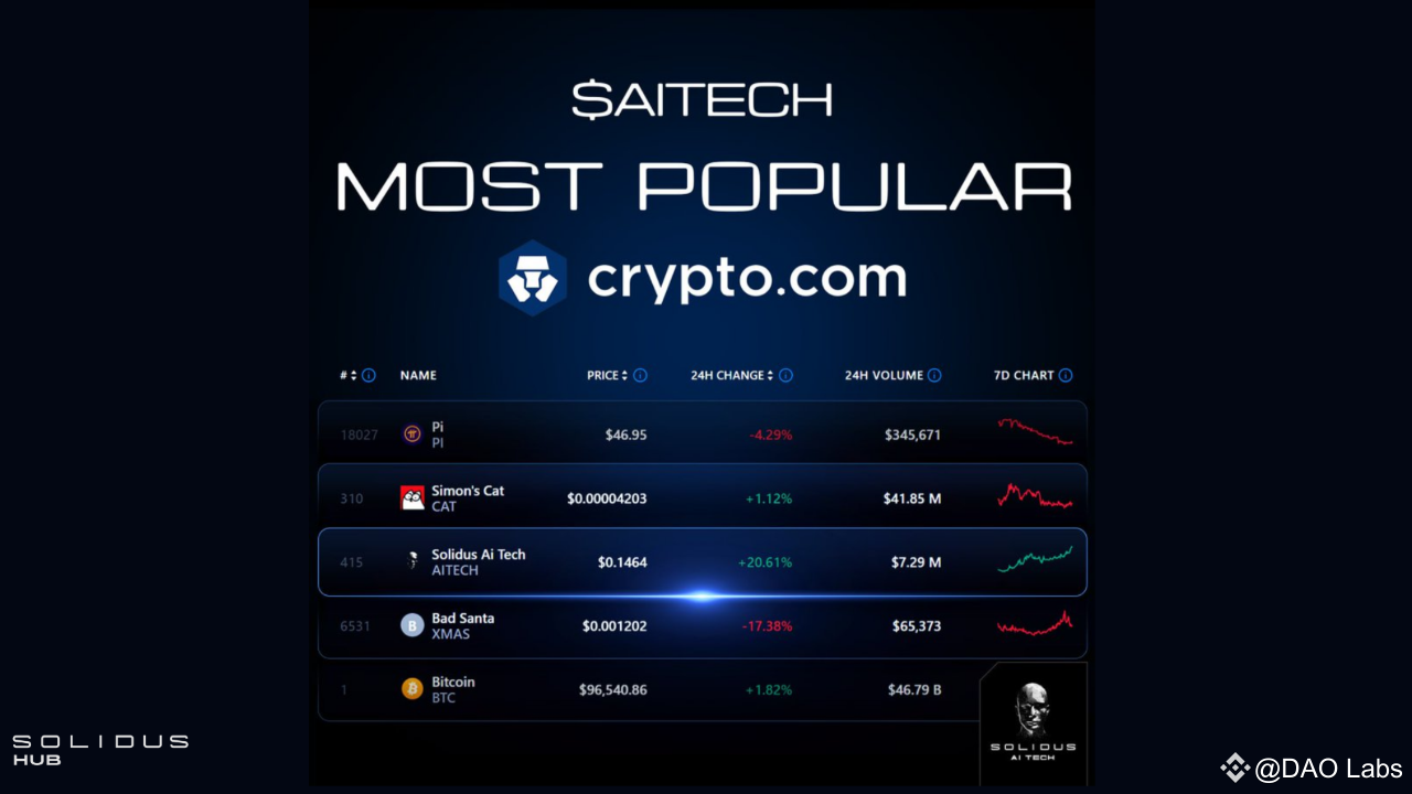 @AITECH vyvolává zájem, když stoupá mezi seznamem nejpopulárnějších tokenů, přičemž za jeden den vzrostl o 20,61 %. Objem obchodování s tímto tokenem také vzrostl na 7,29 milionu dolarů, což z něj činí velmi populární token ve komunitě kryptoměn a na Crypto.com.