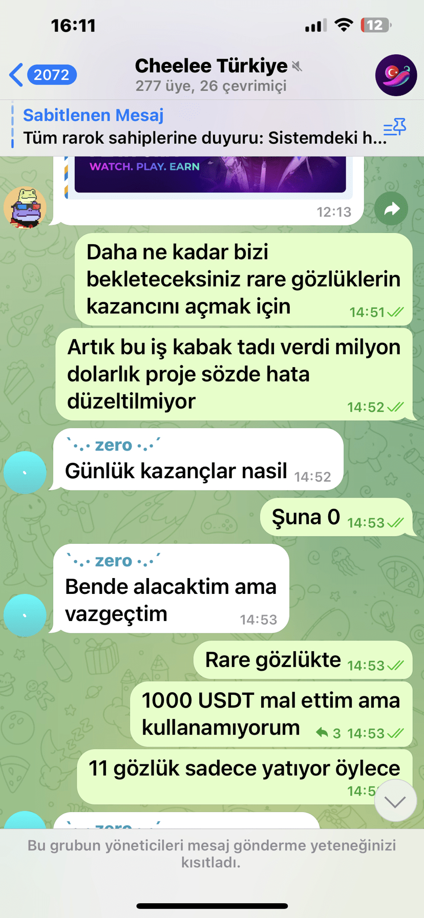 Moji milí staří přátelé, dlouho jsem nesdílel žádný obsah ani články, ale aplikace Cheelee, což je aplikace pro hodinky a výdělky, kterou sám používám posledních deset dní a používá ji mnoho lidí, oznámila, že výdělek brýlí Rare byl zastaven.Důvodem je,že byla zjištěna chyba a bude opět aktivní, jakmile bude tato chyba opravena.Uvedli to,ale za těch deset dní nedošlo k žádnému vývoji,a přestože jsem ptali se mnohokrát, nevysvětlili, v čem byla chyba a proč byli uživatelé pronásledováni, nijak nereagovali. Pokud dojde k chybě, která by se normálně měla vyskytnout, je chyba sdílena s uživateli a jsou informováni, že jsem bude opět aktivní, až bude tato chyba opravena, ale rozhodně takové vysvětlení nemají a rozhodně nemůžete dostat řádnou odpověď na své otázky. Navíc, když tuto situaci nahlásíte, zablokují vás ve skupinách telegramů. brání novým uživatelům v přístupu ke správným informacím. Upřímně řečeno, toto není příliš čestný a férový přístup. Když se na to podíváte, proč je to milionový projekt? Věřte mi, že tomu nerozumím. Výsledkem je , lidé tam investují peníze. V současné době je cena brýlí vzácná, 1000 USDT. To není příliš férový a čestný přístup. Je záhadou, co se stane v budoucnu. Většina uživatelů je nervózní. To přináší otázka do jejich mysli.Potápí se?Všechno je dnes dostupné.Všechno se může stát.Je třeba si dávat pozor,jak to dopadne,jak to udělají,věřte mi,nemám znalosti a po vyřazení tokenu Mex Global Stock Exchange se úzkost ještě zvýšila. Důrazně doporučuji, aby uživatelé, kteří budou investovat, byli velmi opatrní. Zůstaňte v bezpečí.