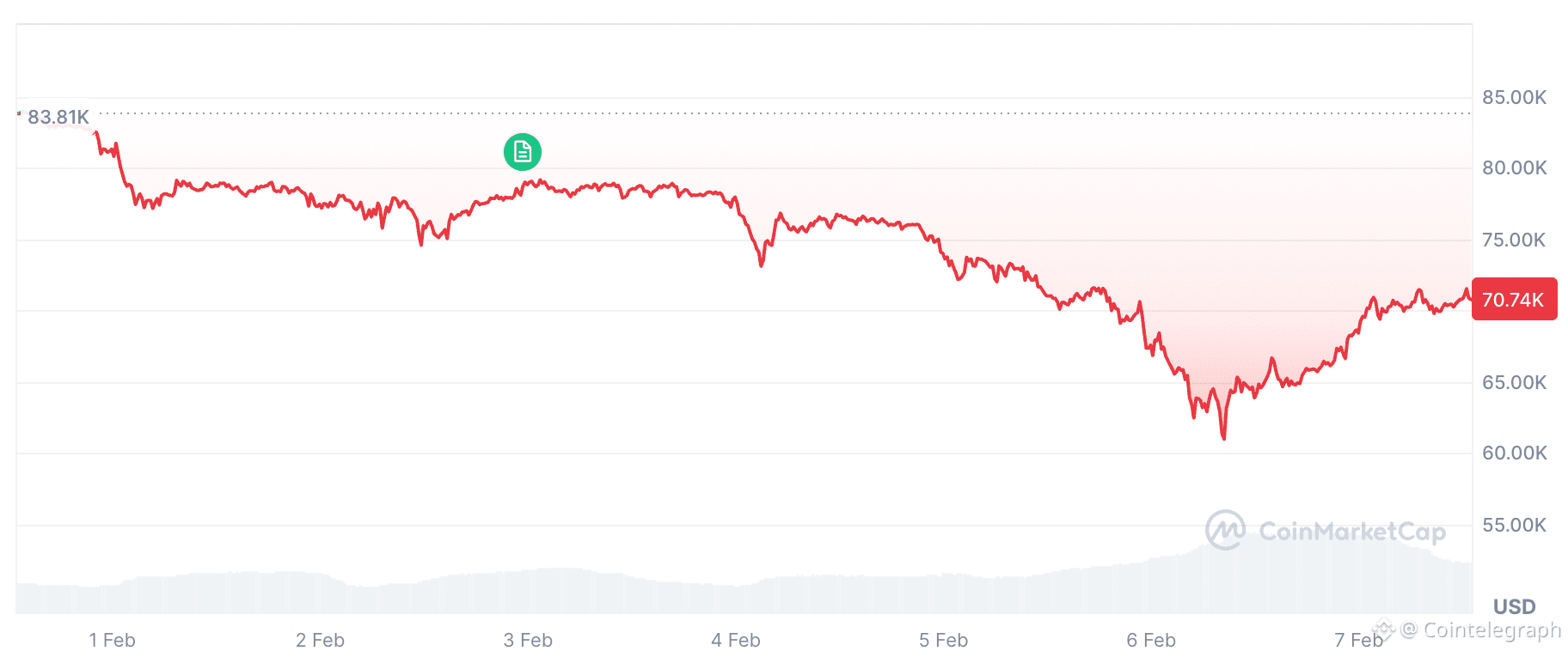 The increase comes as Bitcoin dropped from about $81,500 on Feb. 1 to roughly $60,000 within five days, before rebounding to $70,740 at the time of publication, according to CoinMarketCap.