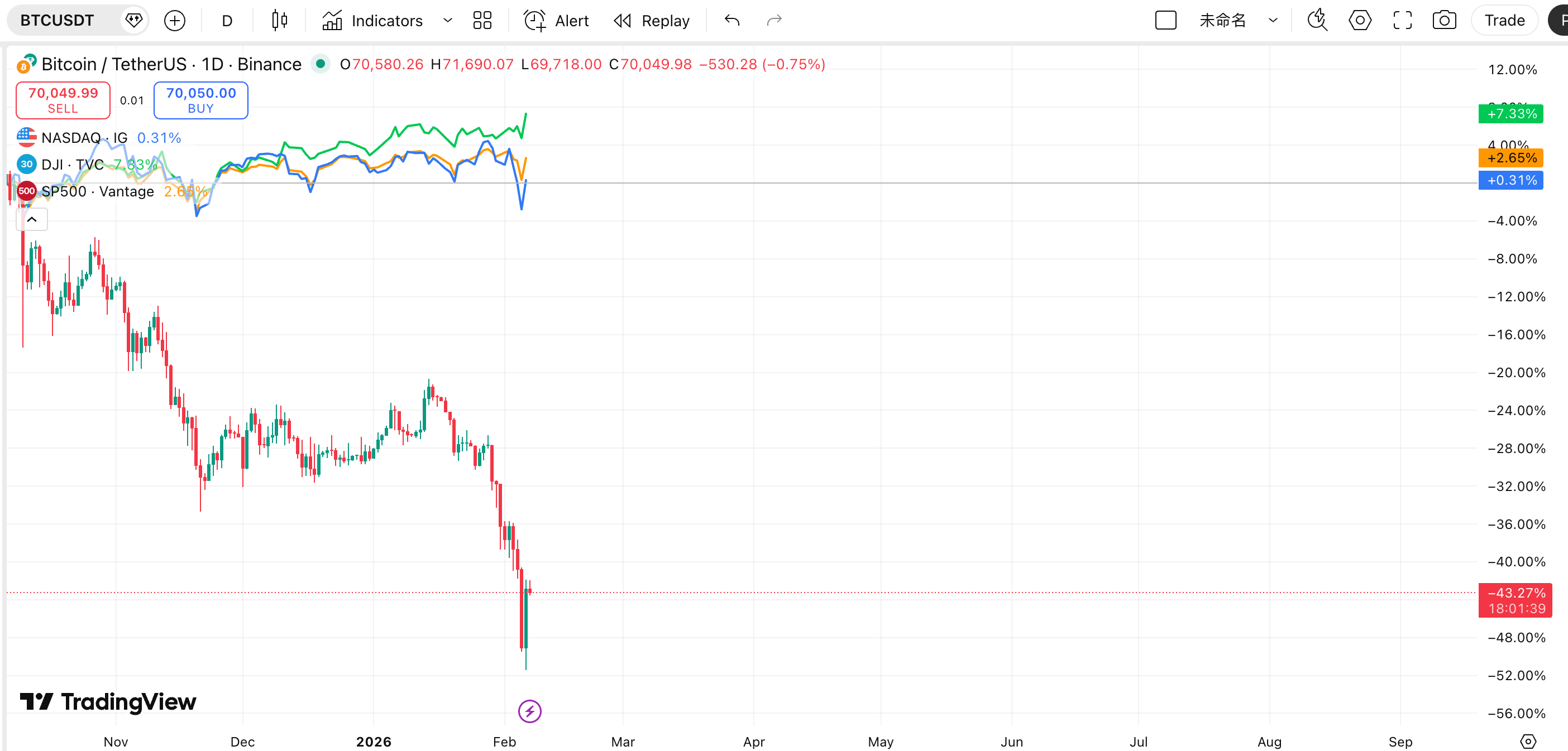 Tento obrázek ukazuje srovnání BTC po dosažení vrcholu v roce 2025 a tří hlavních amerických akciových indexů. Každý si hned všimne, že BTC se již blíží k polovičnímu poklesu, zatímco americké akcie stále rostou. To je skutečně frustrující.
