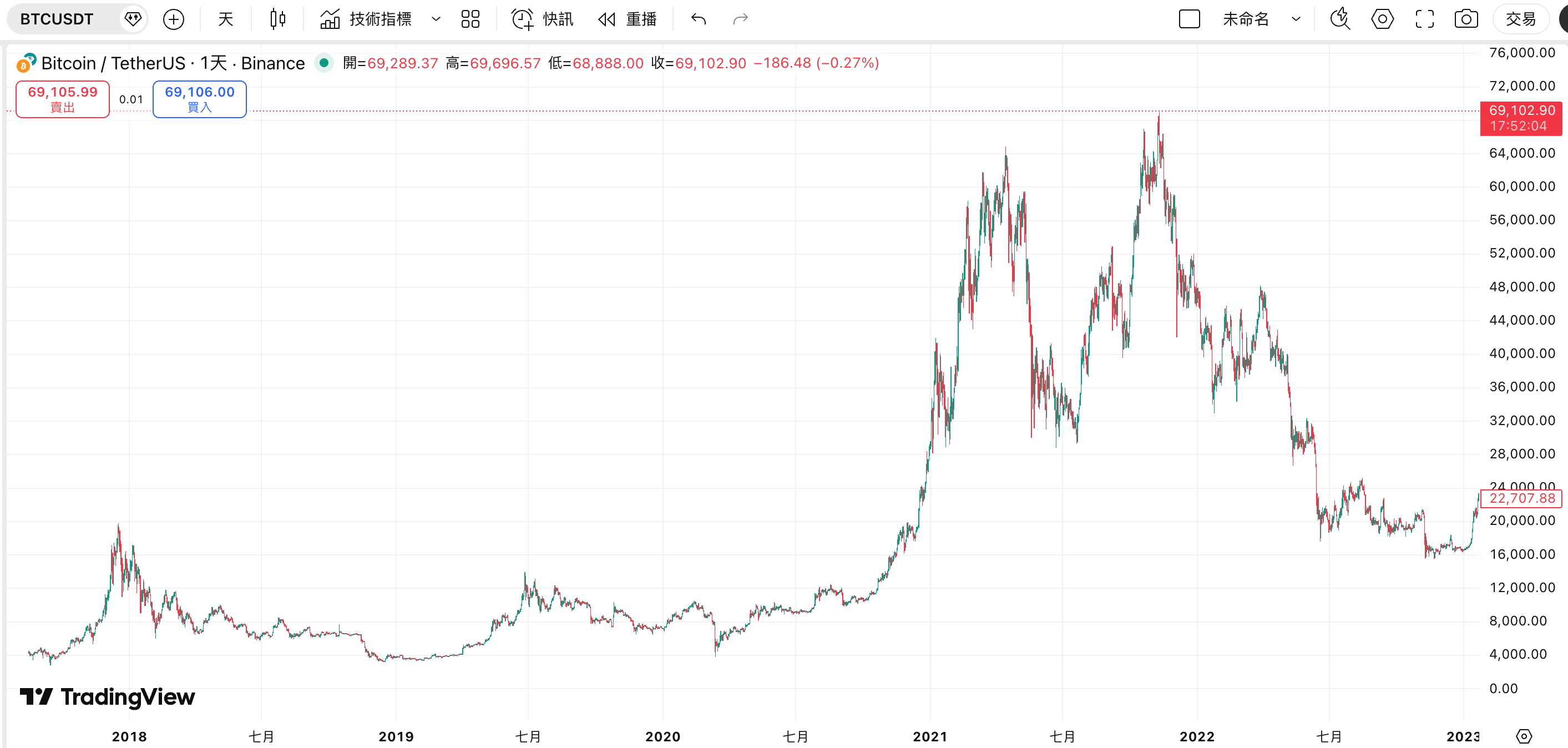 Z pohledu předchozího býčího a medvědího trhu, nejvyšší bod býčího trhu byl 69000, spodní úroveň byla přibližně 15000, což představuje pokles o přibližně 78 %, zatímco nyní je to 126000, aktuální minimum je 60000, pokles je také jen 52 %.