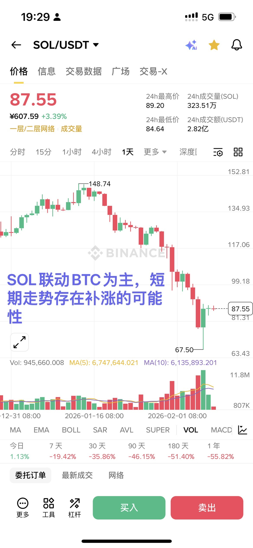SOL celkově vykazuje silnou korelaci s BTC a ETH a v současnosti má relativně nízký nárůst ve srovnání s BTC a ETH, existuje prostor pro nápravu, krátkodobě se očekává odraz na úroveň kolem 95, co se týče toho, zda otevřít long pozici, to už je na vás.