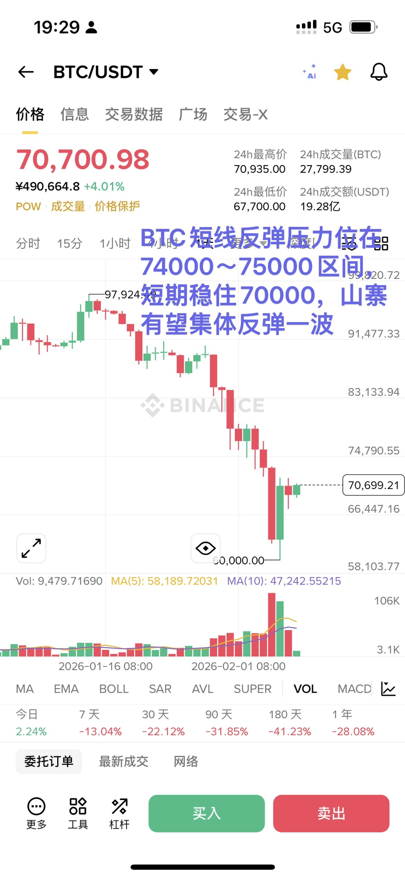 Krátkodobý tlak na odraz BTC je mezi 74 tisíci a 75 tisíci, dolní podpora je mezi 65 tisíci a 66 tisíci, ti, kteří obchodují střednědobé kontrakty, mohou podle těchto dvou intervalů otevírat long a short pozice, střední úrovně se obvykle nedoporučuje obchodovat, pokud neobchodujete krátkodobě, samozřejmě, že i v našem komunitním chatu budeme dávat signály pro krátkodobé obchody, můžete mě následovat při obchodování.