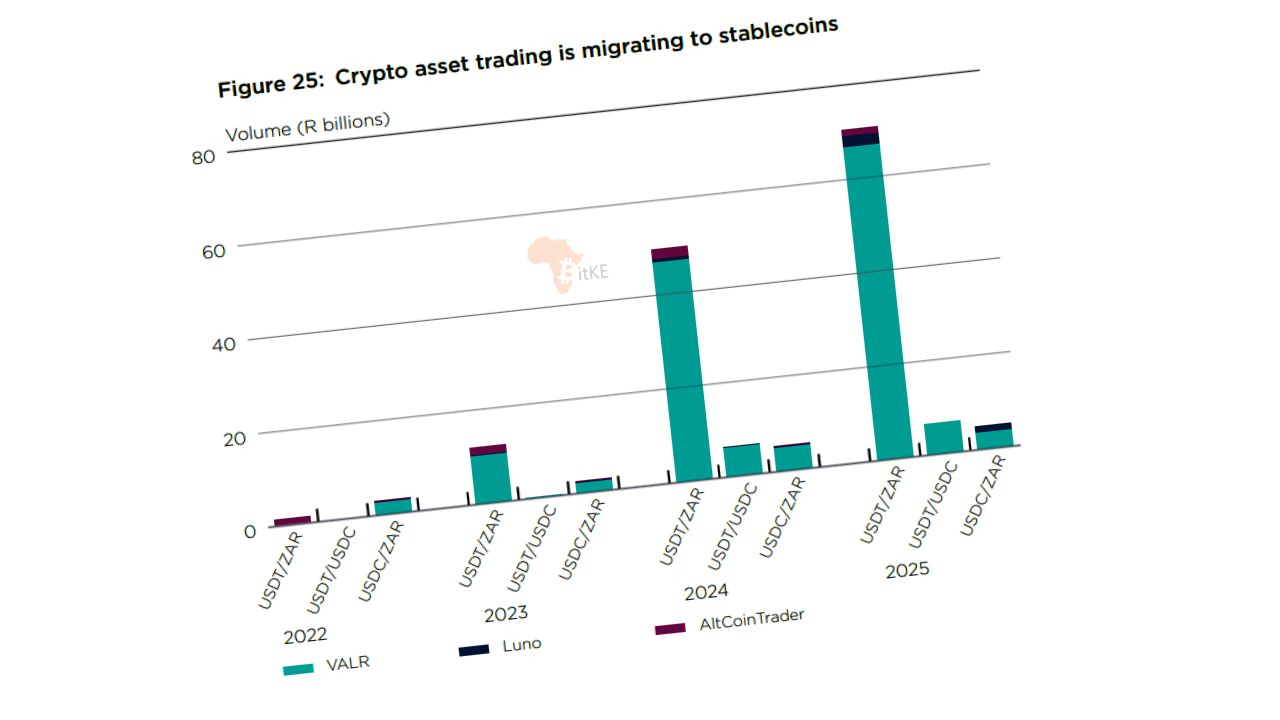 Zpráva z roku 2025 zaznamenala ostrý nárůst v přijetí: kombinovaný počet uživatelů na třech největších kryptoburzách v zemi vzrostl na téměř 7,8 milionu do poloviny roku 2025, přičemž objemy obchodování se stablecoiny vázanými na USD vzrostly, protože jejich nižší volatilita je učinila preferovaným obchodním párem na místních platformách.