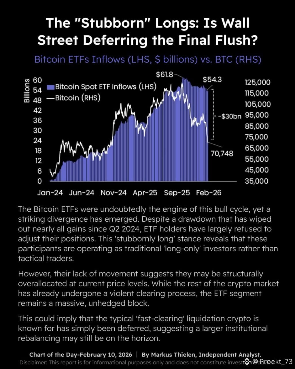 Аналитики #Matrixport обращают внимание на важную дивергенцию: спотовые ETF были мотором этого цикла, но при текущей просадке поведение держателей ETF выглядит не как у тактических трейдеров, а как у классических инвесторов "купил и держу".