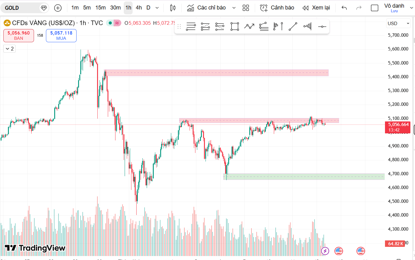 🔴 Kháng cự mạnh 5,080 – 5,120 (vùng phân phối gần nhất) 5,400 – 5,450 (đỉnh cũ xa hơn)
