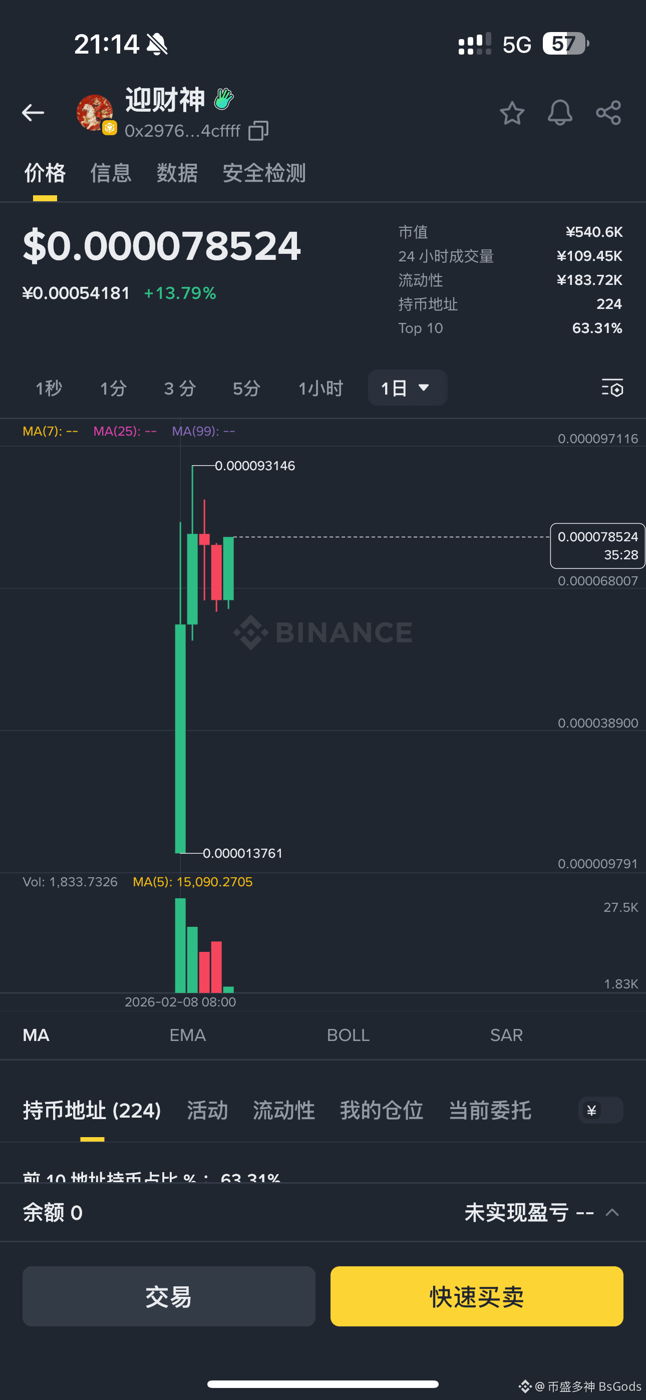 点击⬇️下方选择BNB进行交易