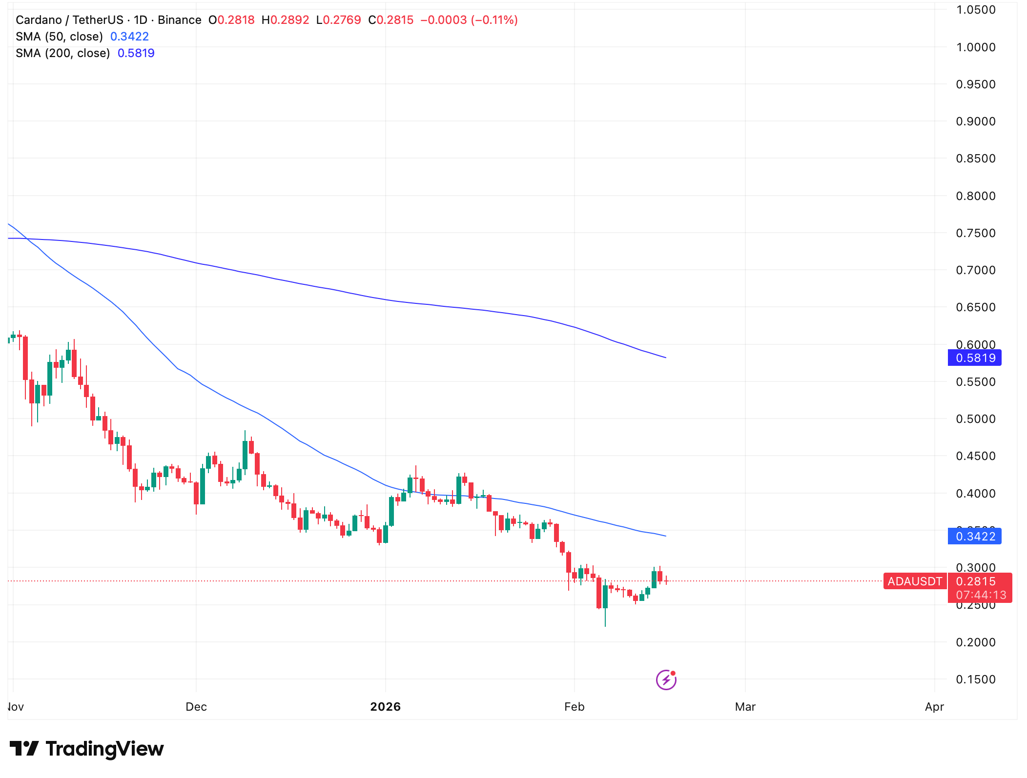 Cardano (ADA) is attempting to stabilize after a volatile start to 2026. Trading near $0.30 as of February 16–18, the token has rebounded roughly 4% in recent sessions and is up about 7% over the past week. The move follows a sharper monthly decline of nearly 25% from levels around $0.37, positioning February as a potential consolidation phase rather than a decisive trend reversal.
