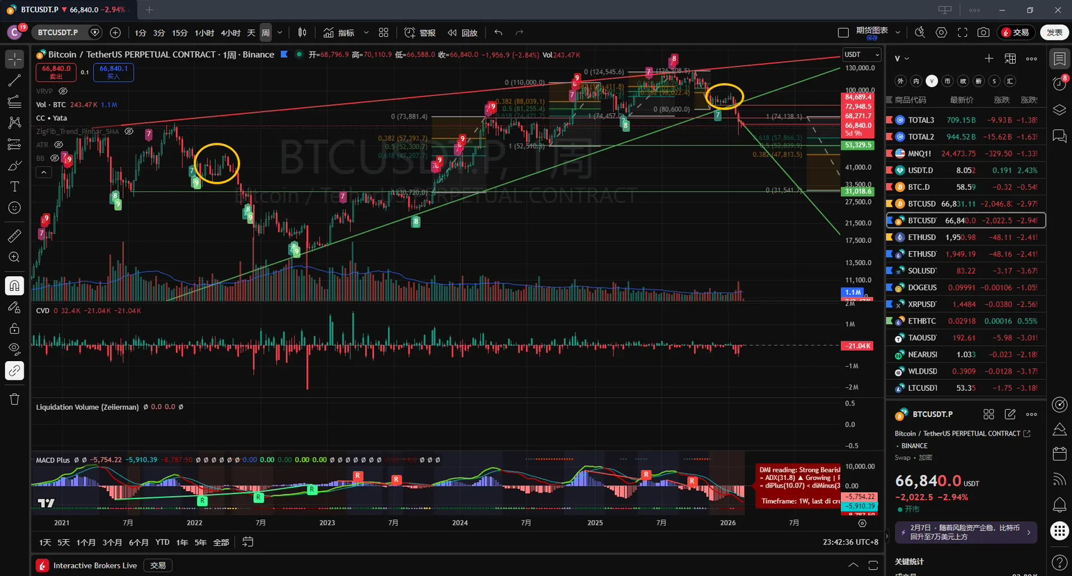 Dále je důležité si uvědomit riziko: při pohledu na objem obchodování na týdenním grafu je extrémně nízký. Nebuďte překvapeni, pokud se narativ o BTC zhroutí. Existuje také teorie „vyprodanosti“: pokud se nabídka vyčerpá, mohlo by to vést k propadu cen. BTC, jakožto přirozeně deflační měna, má tento problém. (Pokud se veškerý pozemek dostupný k prodeji v Pekingu vyprodá a nelze postavit žádné nové bytové komplexy, pak ceny bydlení nevyletí do nebeských výšin; místo toho nedostatek nabídky způsobí propad cen.)