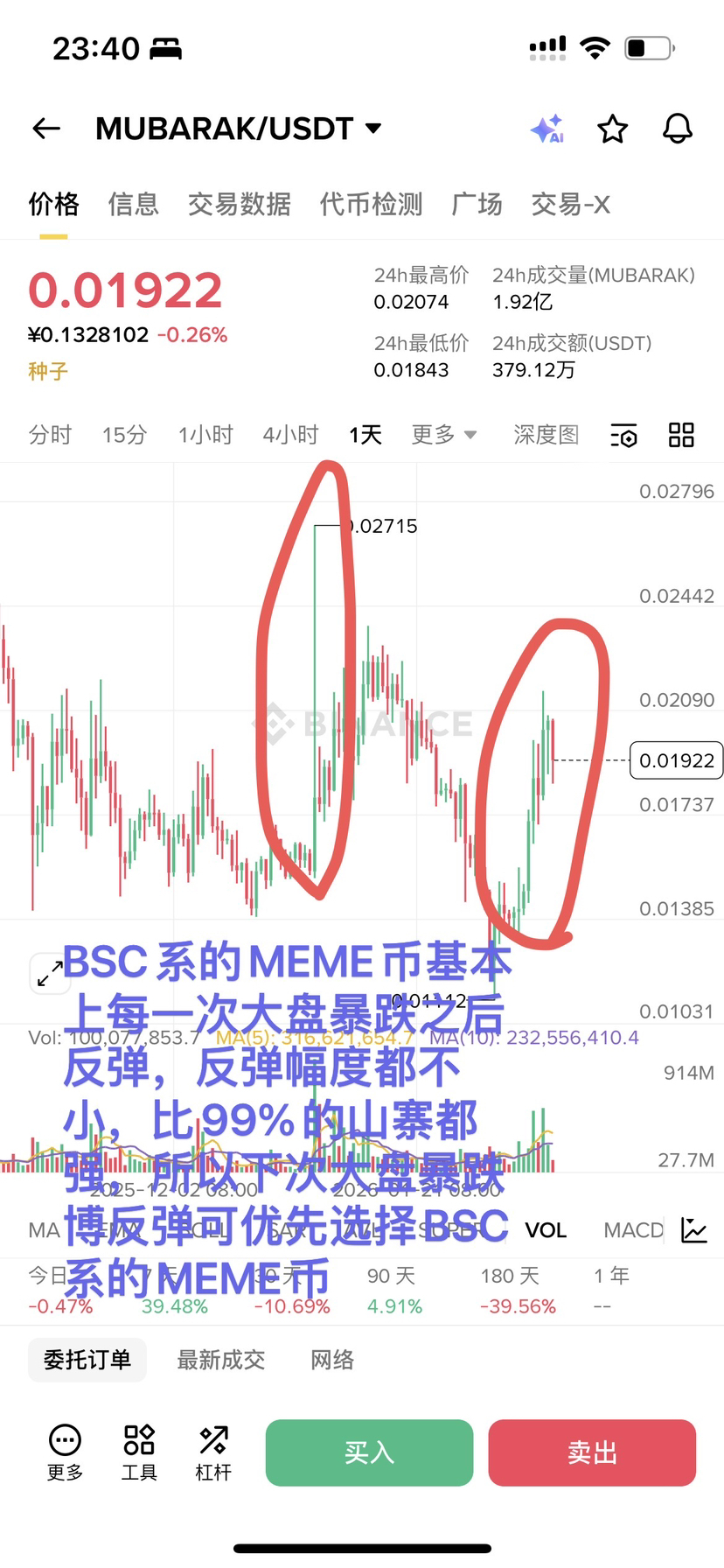 Navíc meme coiny přidružené k BSC obvykle následují po každém krachu trhu oživení a jejich oživení je silnější než u většiny altcoinů, jako jsou TUT a MUBARAK. Tomu můžete porozumět pohledem na tržní rytmus nebo prohlédnutím svíčkových grafů těchto mincí.