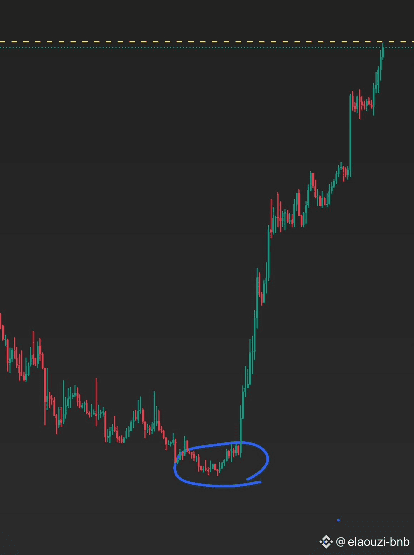 خلينا نقارنها بوضعنا الحالي ..شايف الدايرة الزرقاء دي شايف ازاي صغيرة بالنسبة لحجم الصعود الدايرة الزرقاء اللي انت شايفها صغيرة دي استغرقت حوالي 8 شهور ( منطقة الخروج من القاع ) صعود (20%) ثم هبوط صعود (1x) ثم هبوط لاختبار القاع ..ملل وتطفيش ولكودة