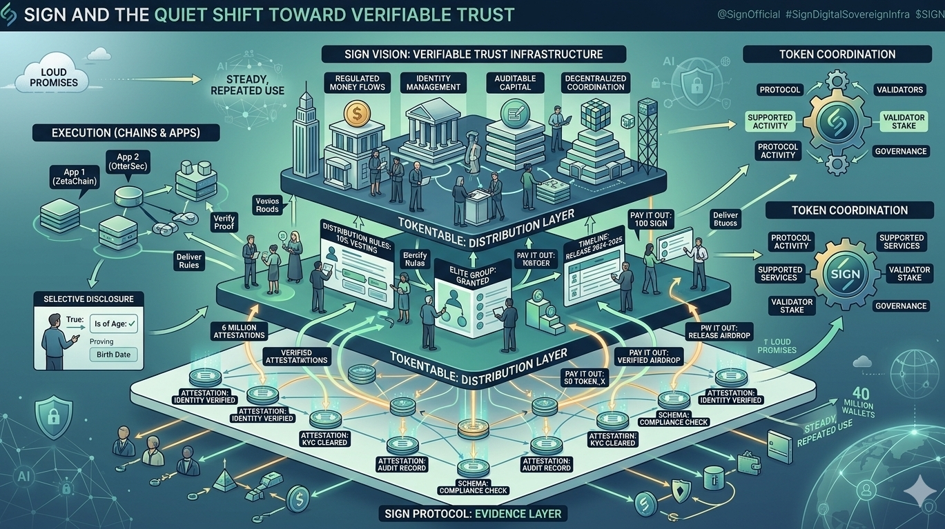 If SIGN succeeds, I do not think success will look like a single dramatic moment. It will look more like steady, repeated use. More attestations. More builders adopting the protocol as a normal part of verification flows. More token distributions that do not need fragile manual processes. More systems where the record of trust survives beyond one application or one company. The whitepaper says the project processed over 6 million attestations in 2024 and distributed more than $4 billion in tokens to more than 40 million wallets, while also setting ambitious growth goals for the next phase. Those numbers are interesting, but what matters more is whether the network keeps becoming useful in ways that are boring, dependable, and hard to replace. That is usually where durable infrastructure reveals itself.