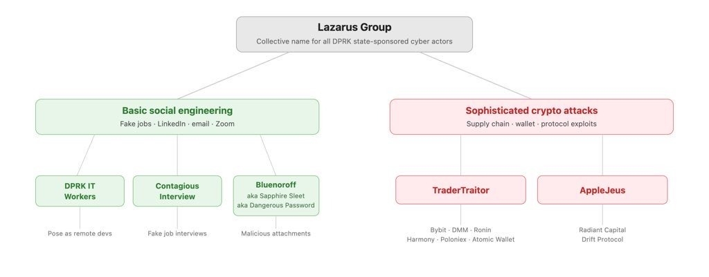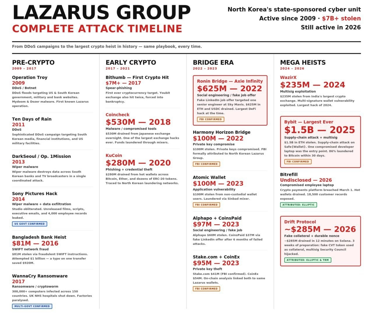 Skupina Lazarus je hackerský kolektiv napojený na Severní Koreu, který od roku 2017 podle analytiků v síti R3ACH ukradl odhadovaných 7 miliard dolarů v kryptoměnách.