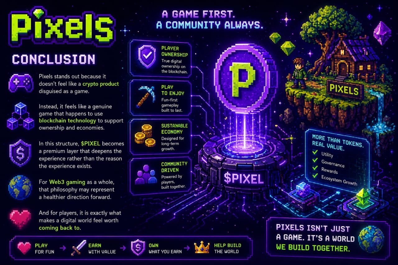 If Pixels continues improving gameplay while maintaining economic discipline, it could remain one of the strongest examples of a Web3 game built around habit and community rather than short-term speculation.