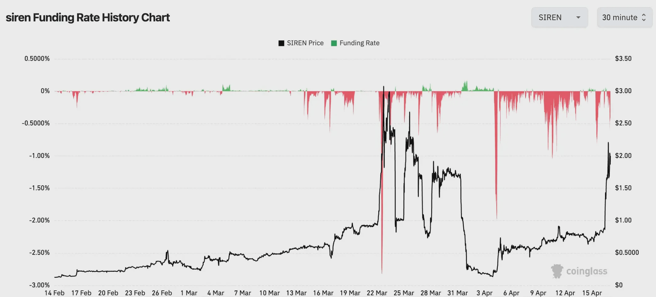 Během rychlého nárůstu ceny SIREN dosáhla úroková sazba -0,2989 % / každých 8 hodin, což představuje roční přibližně -328 %. Přeloženo to znamená, že shortování SIREN a držení pozice, každých 8 hodin musíte platit longům přibližně 0,3 % z kapitálu. Pokud držíte pozici měsíc, tato částka by mohla pohlcovat více než 25 % vašeho kapitálu, aniž by se počítaly účetní ztráty způsobené nárůstem ceny.